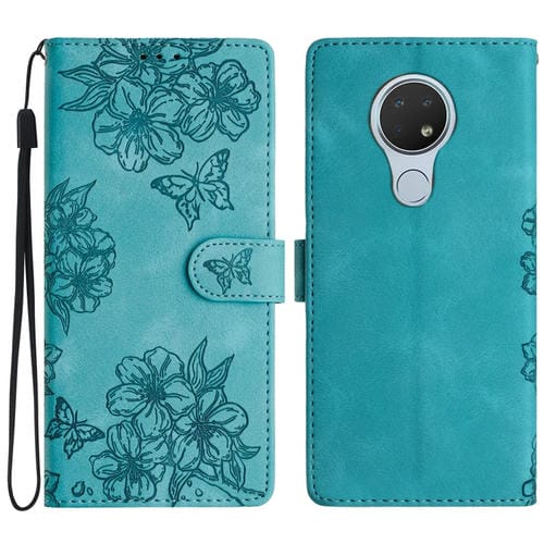 Funda para Nokia 6.2/7.2 Cherry Blossom Butterfly Skin Feel PU en Relieve (Verde)