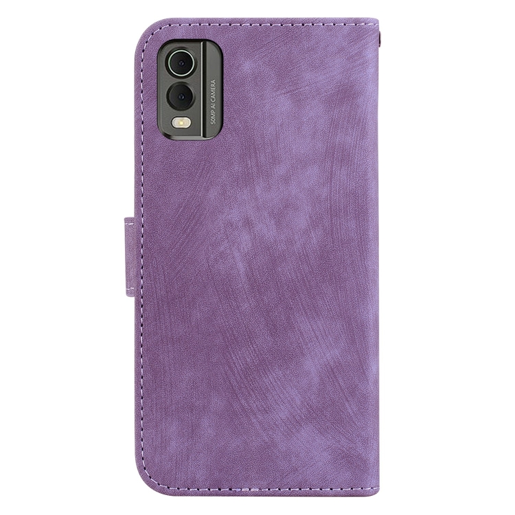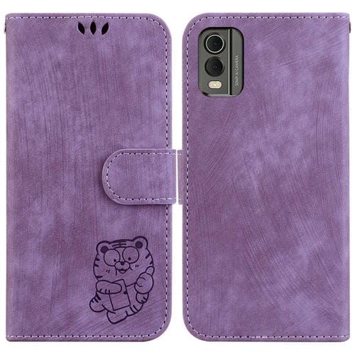 Funda de Cuero para Nokia C32 Little Tiger con Relieve (Púrpura)