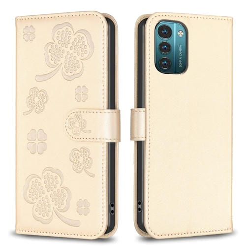 Funda para Teléfono Nokia G11 / G21 de Cuero con Relieve de Cuatro Hojas (Dorado)