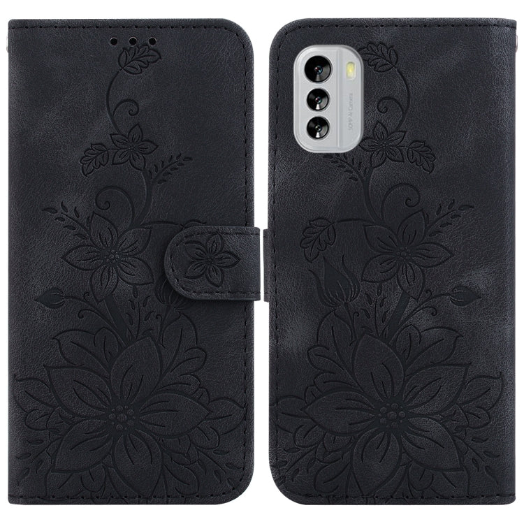 Estuche de Teléfono para Nokia G60 Lily de Cuero en Relieve (Negro)