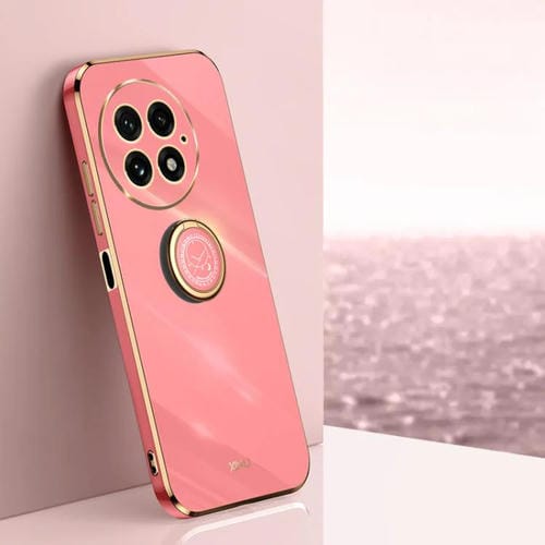 Funda TPU Xinli para OnePlus 13 con Borde Recto 6D Galvanizado y Soporte para Anillo (Rojo Espino)