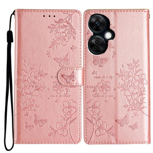 Funda para OnePlus Nord Ce 3 Lite 5G de Cuero con Relieve Flor y Mariposa (Oro Rosa)