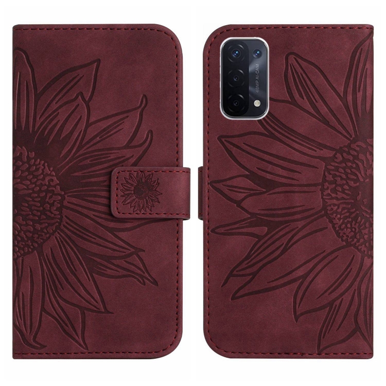 Funda de Cuero con Tapa y Cordón para OnePlus Nord N300 Skin Feel Sun Flower (Rojo Vino)