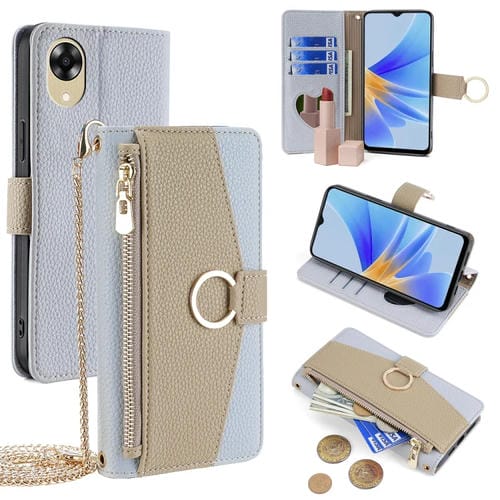 Para Oppo A17K 4G Crossbody Litchi Texture Funda de Cuero para Teléfono (Azul)