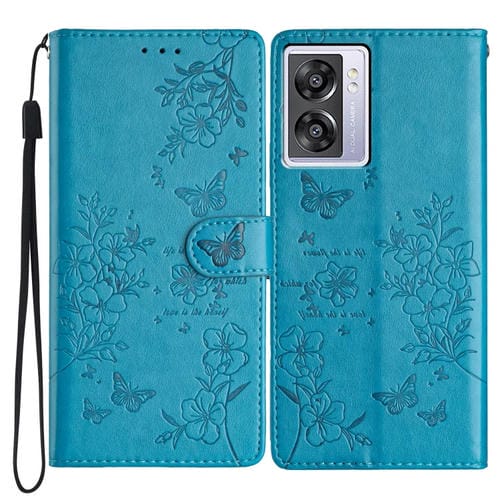 Para Oppo A57 4G / 5G / A77 5G Funda para Teléfono de Cuero con Relieve de Flor de Amor y Mariposa (Azul)