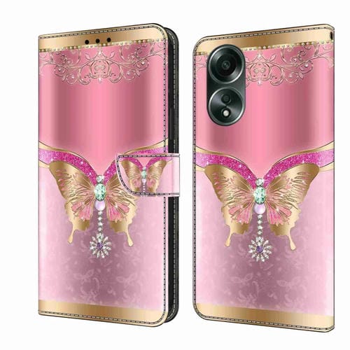 Para Oppo A58 4G Crystal 3D Funda Protectora de Cuero para Teléfono a Prueba de Golpes (Mariposa Inferior Rosa)