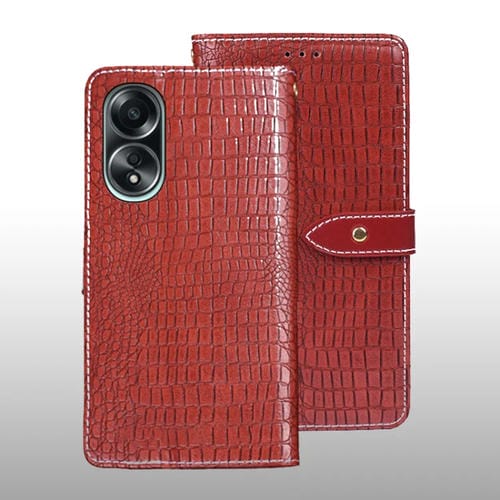 Para Oppo A58 4G Funda para Teléfono de Cuero con Textura de Cocodrilo Idewei Extranjero (Rojo)