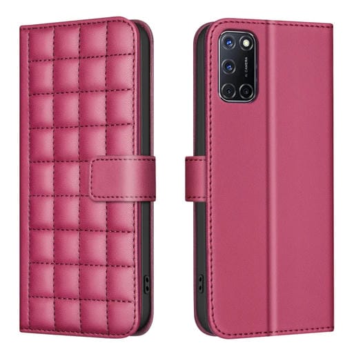 Para Oppo A72 / A52 / A92 Funda de Cuero para Teléfono con Textura Cuadrada (Rojo)