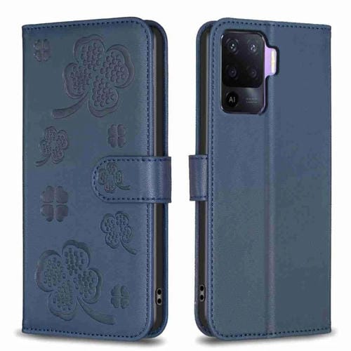 Para Oppo A76 5G / A36 4G Funda para Teléfono de Cuero con Relieve de Cuatro Hojas (Azul)