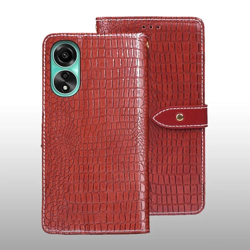 Para Oppo A78 4G Funda para Teléfono de Cuero con Textura de Cocodrilo Idewei Extranjero (Rojo)