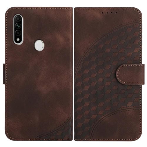 Para Oppo A8 / A31 Yx0060 Funda de Cuero para Teléfono con Relieve y Cabeza de Elefante con Cordón (Café)