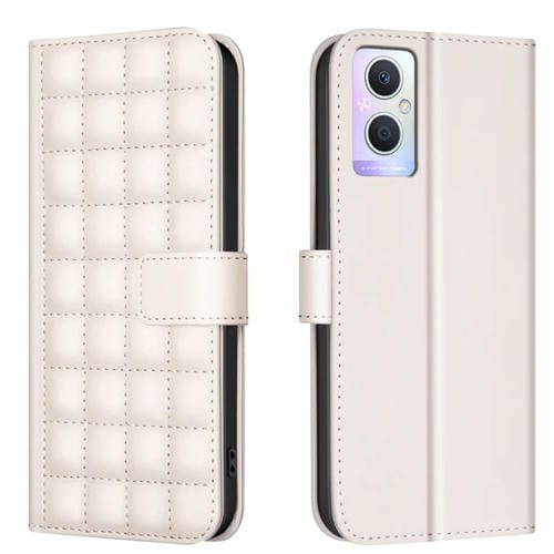 Para Oppo A96 5G / Reno7 Z Funda de Cuero para Teléfono con Textura Cuadrada (Beige)