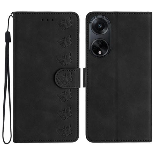 Para Oppo A98 5G Seven Butterflies Funda de Cuero para Teléfono En Relieve (Negro)