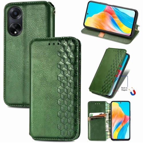 Para Oppo A98 Cubic Grid Funda de Teléfono de Cuero Magnético Prensado (Verde)