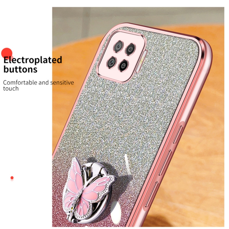 Para Oppo F17 Funda para Teléfono de TPU con Soporte de Mariposa con Brillo Degradado Plateado (Rosa)