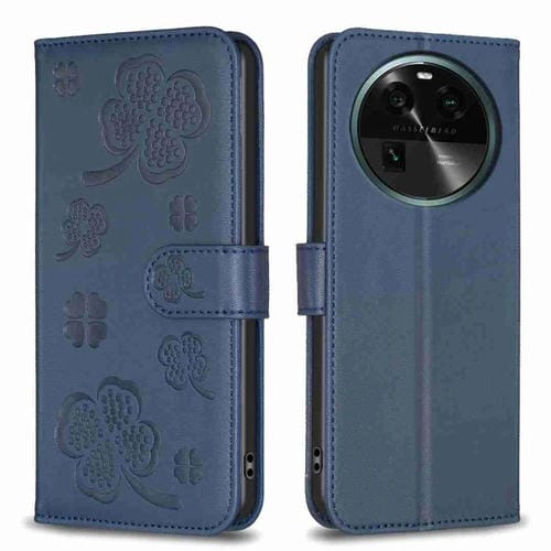 Para Oppo Find X6 Funda de Cuero con Relieve de Cuatro Hojas para Teléfono (Azul)