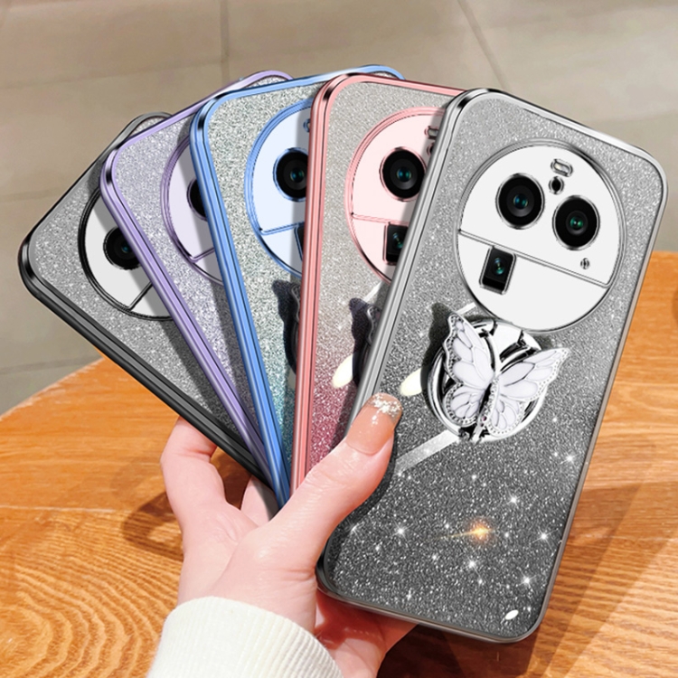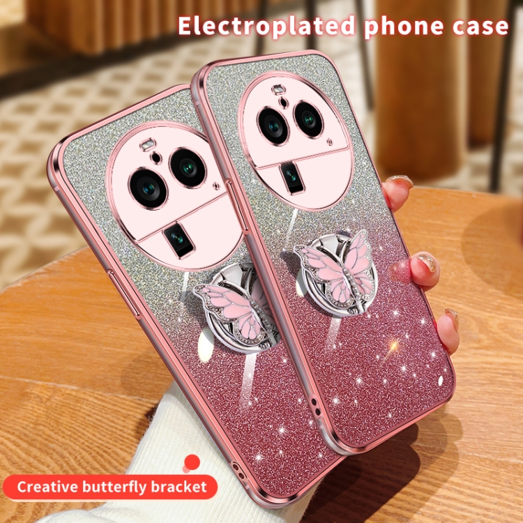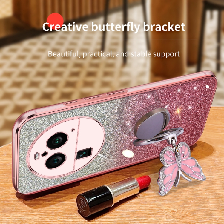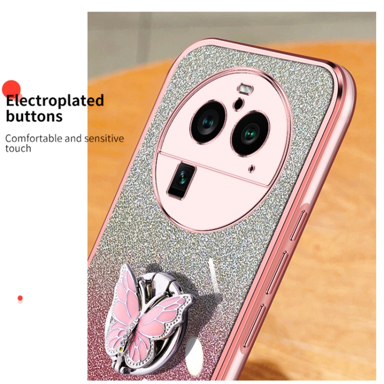 Para Oppo Find X6 Pro Funda para Teléfono de TPU con Soporte de Mariposa con Brillo Degradado Plateado (Rosa)