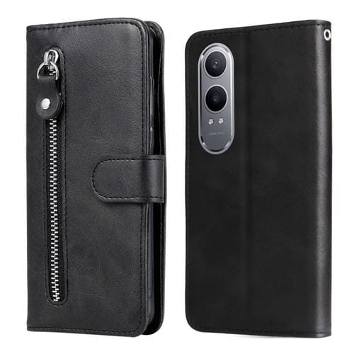 Para Oppo K12X Funda para Teléfono de Cuero con Cremallera y Textura de Becerro a la Moda (Negro)