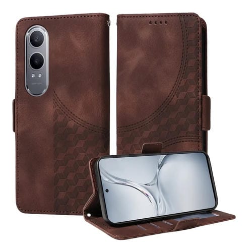 Para Oppo K12X Funda para Teléfono de Cuero Estrellado con Rombos En Relieve (Marrón)