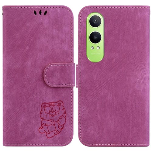 Para Oppo K12X Little Tiger Funda de Cuero En Relieve para Teléfono (Rojo Rosa)