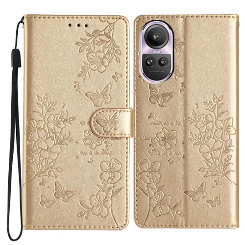 Para Oppo Reno10 / Reno10 Pro Butterfly Love Flower Funda de Cuero para Teléfono En Relieve (Oro)