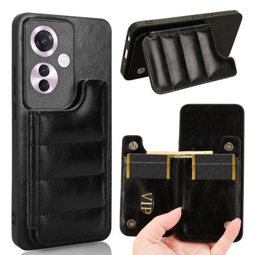 Para Oppo Reno11 a Versión Jp Funda para Teléfono con Bolsa para Tarjetas de Costura con Patrón de Vaca (Negro)