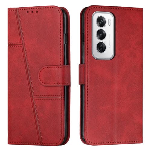 Para Oppo Reno12 5G Funda de Teléfono de Cuero con Hebilla y Textura de Pantorrilla con Costura Global (Rojo)