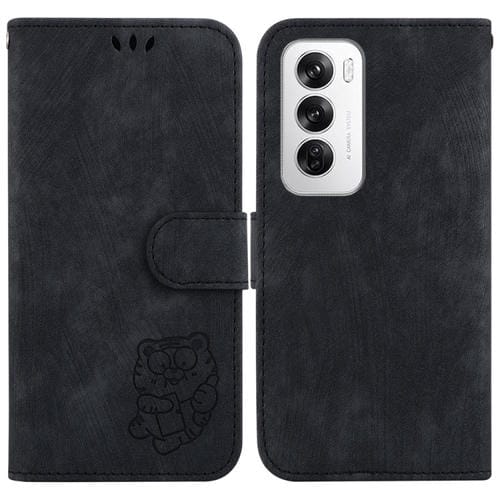 Para Oppo Reno12 5G Global Little Tiger Funda de Cuero para Teléfono En Relieve (Negro)