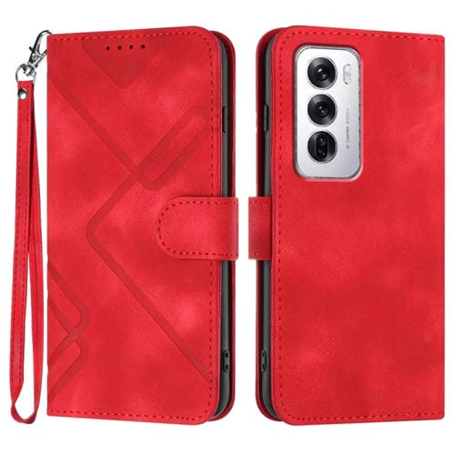Para Oppo Reno12 Funda de Teléfono de Cuero con Sensación de Piel con Patrón de Línea Global (Rojo)