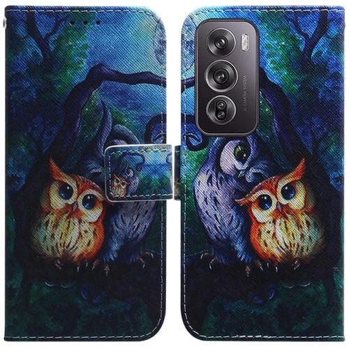 Para Oppo Reno12 Pro 5G Funda de Teléfono de Cuero con Tapa con Dibujo Coloreado Global (Búho de Pintura al Óleo)