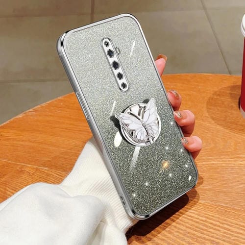 Para Oppo Reno2 Z Funda para Teléfono de TPU con Soporte de Mariposa con Brillo Degradado Plateado (Plata)
