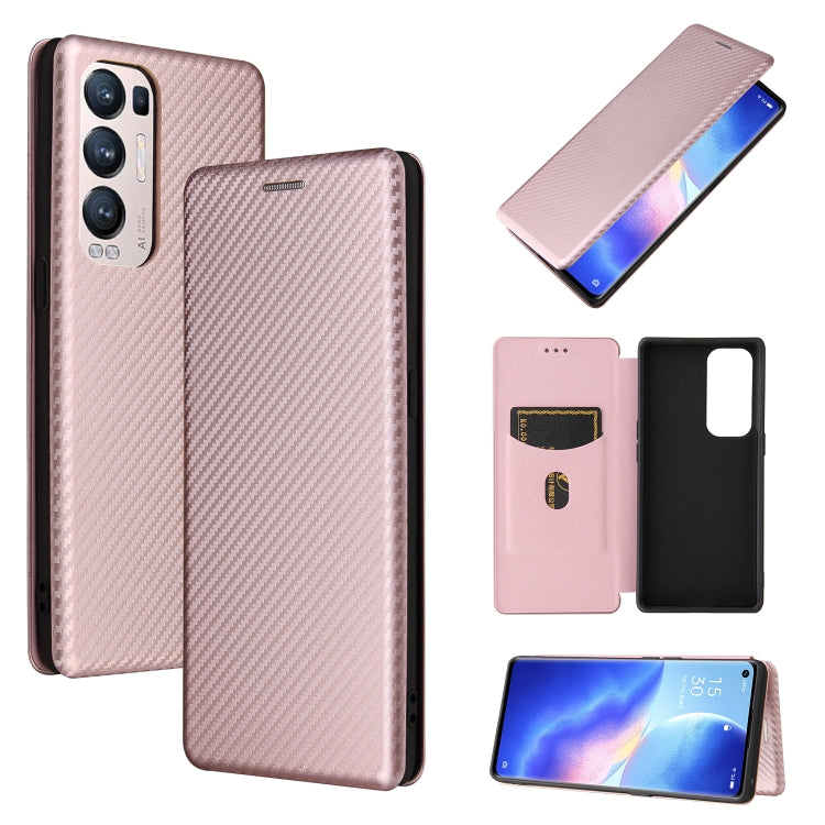 Funda para Oppo Reno5 Pro con Fibra de Carbono Textura Magnética Horizontal Flip TPU + PC y Cuero PU con Ranura para Tarjeta (Rosa)