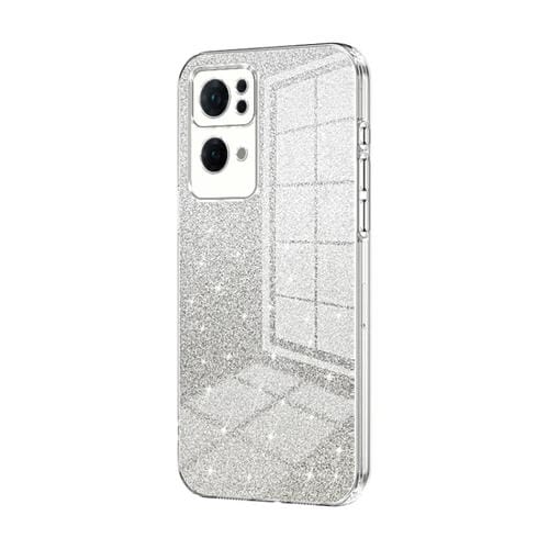 Para Oppo Reno7 Pro Estuche para Teléfono Galvanizado con Polvo de Brillo Degradado (Transparente)