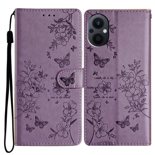 Para Oppo Reno8 Lite 5G Funda para Teléfono de Cuero con Relieve de Flor de Amor y Mariposa (Púrpura)