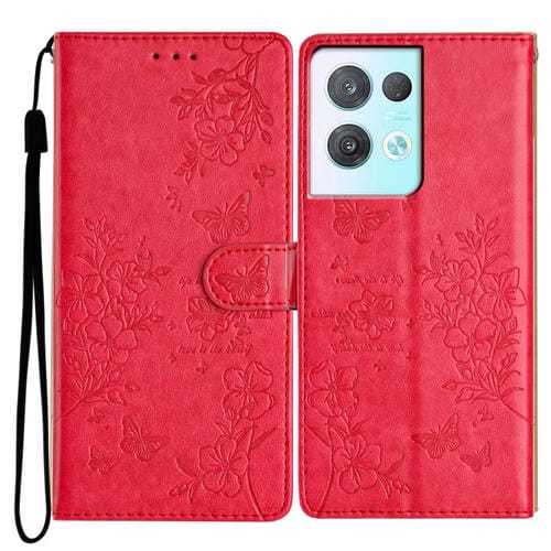 Para Oppo Reno8 Pro 5G Global Butterfly Love Flower Funda de Cuero para Teléfono En Relieve (Rojo)