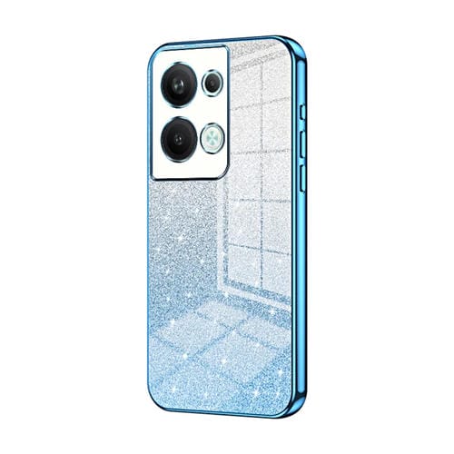 Para Oppo Reno9 Pro + Estuche para Teléfono Galvanizado con Polvo de Brillo Degradado (Azul)
