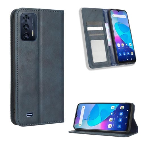 Funda de Cuero para Oukitel C31 con Hebilla Magnética y Textura Retro (Azul)