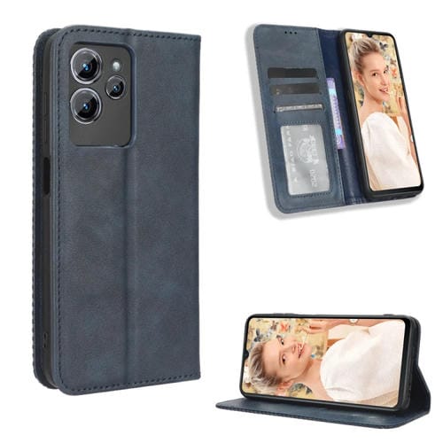 Funda de Cuero con Hebilla Magnética para Oukitel C32 Textura Retro (Azul)
