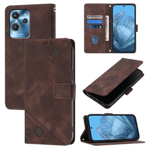 Funda de Cuero para Oukitel C32 Skin Feel en Relieve (Marrón)
