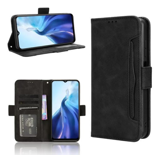 Funda de Cuero para Oukitel C35 / C36 con Textura Becerro y Ranuras para Tarjetas (Negro)
