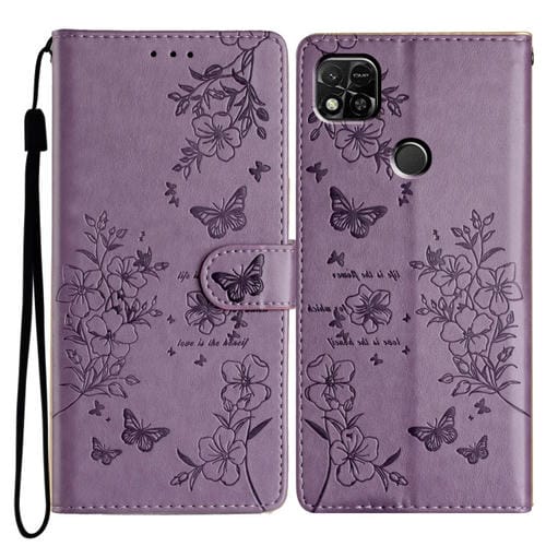 Para Redmi 10A Funda de Cuero para Teléfono con Mariposas y Flores (Púrpura)
