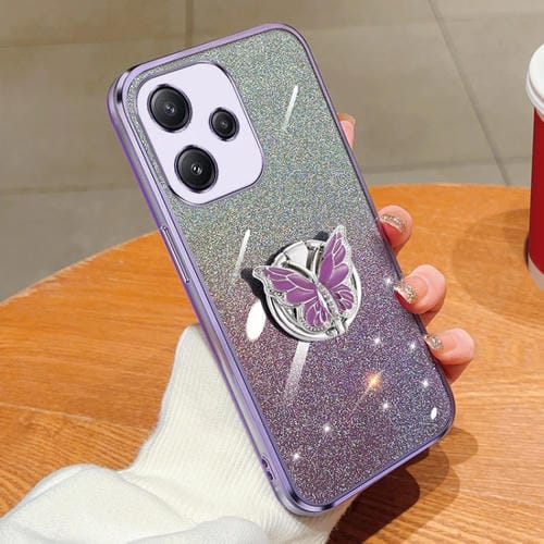 Para Redmi 12 5G Estuche para Teléfono de TPU con Soporte de Mariposa con Brillo Degradado Plateado (Púrpura)