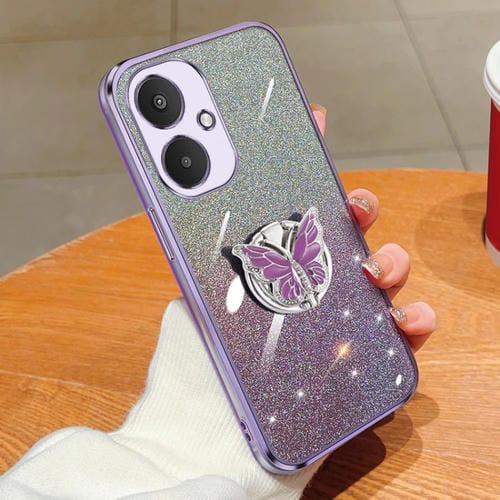 Para Redmi 13C 5G Estuche para Teléfono de TPU con Soporte de Mariposa con Brillo Degradado Plateado (Púrpura)