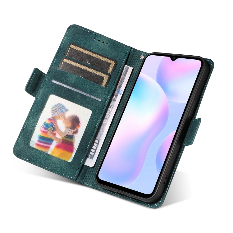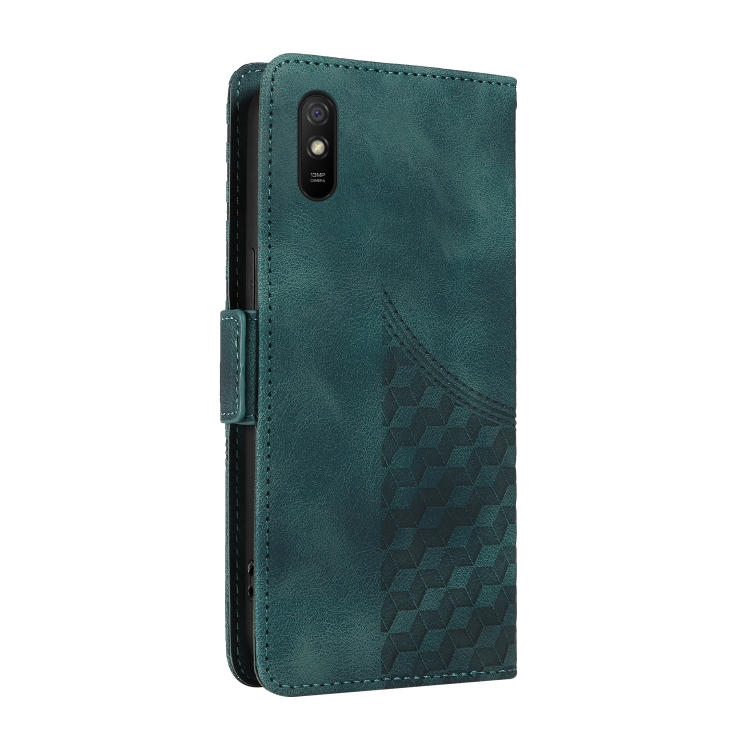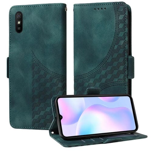Para Redmi 9A / 9I Funda para Teléfono de Cuero Estrellado con Rombos En Relieve (Verde)