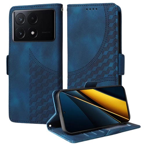 Para Redmi K70E 5G Funda para Teléfono de Cuero Estrellado con Rombos En Relieve (Azul)