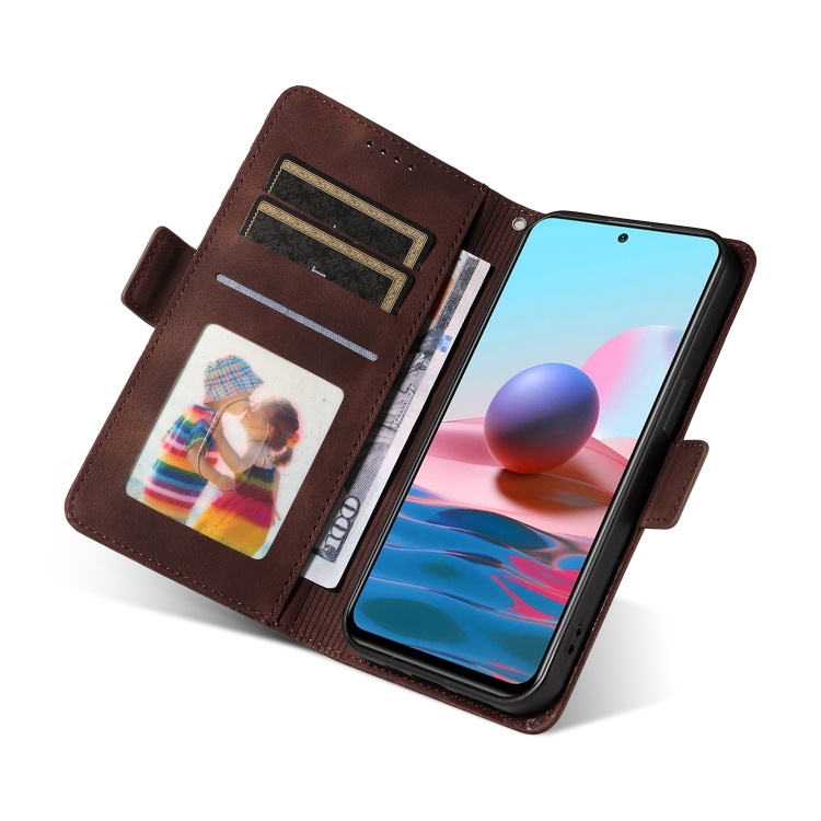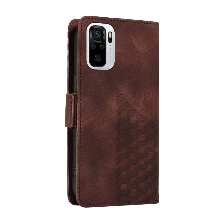 Para Redmi Note 10 4G India Funda para Teléfono de Cuero Estrellado con Rombos En Relieve (Marrón)