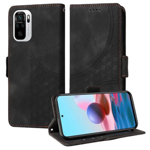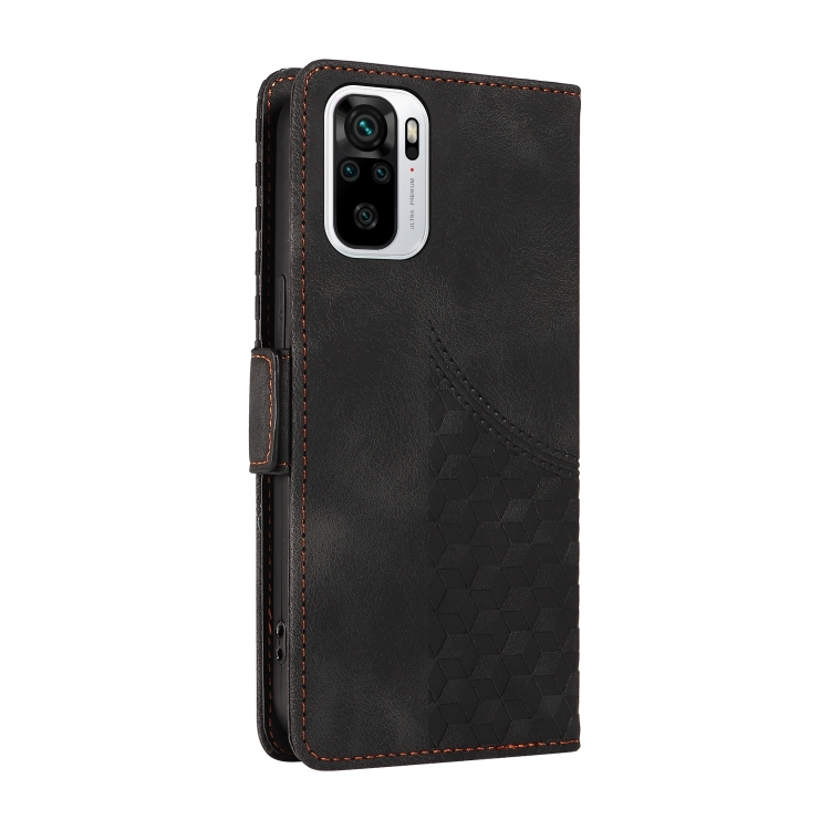 Para Redmi Note 10 4G India Funda para Teléfono de Cuero Estrellado con Rombos En Relieve (Negro)
