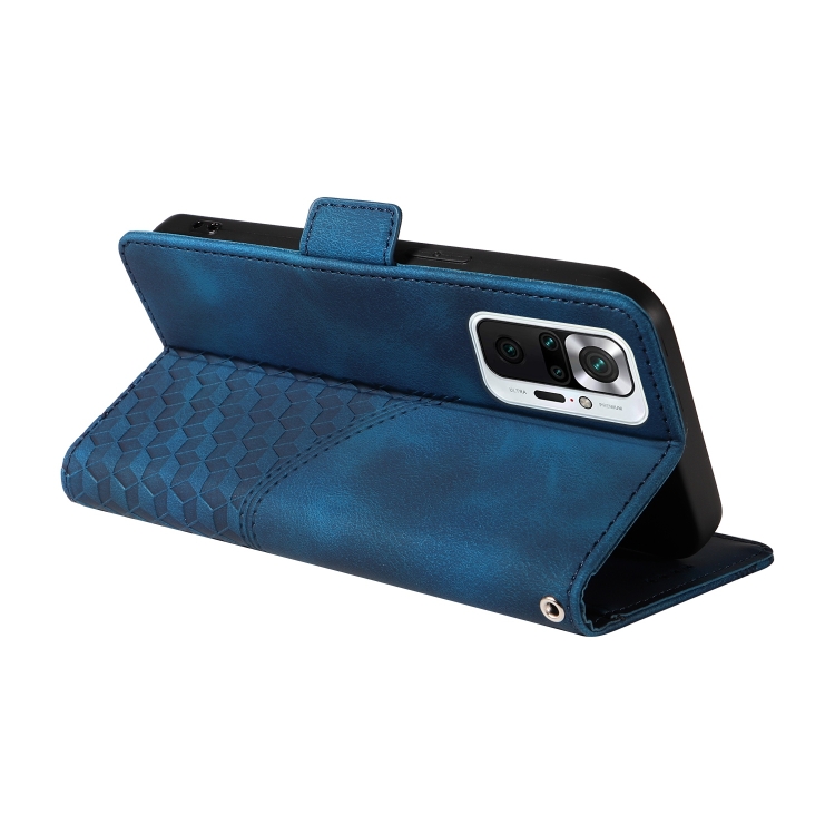Para Redmi Note 10 Pro 4G Funda para Teléfono de Cuero Estrellado con Rombos En Relieve Global (Azul)