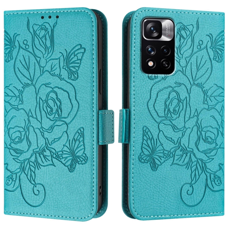 Para Redmi Note 11 Pro 5G / 4G / Global Embossed Rose Rfid Funda de Cuero Antirrobo para Teléfono (Azul Claro)