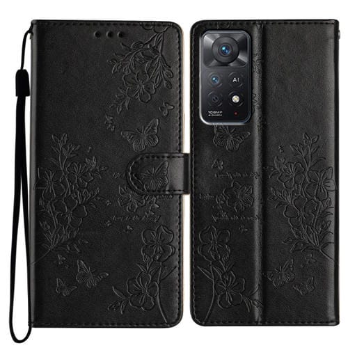 Para Redmi Note 11 Pro 5G Funda de Cuero para Teléfono con Mariposas y Flores Globales (Negro)